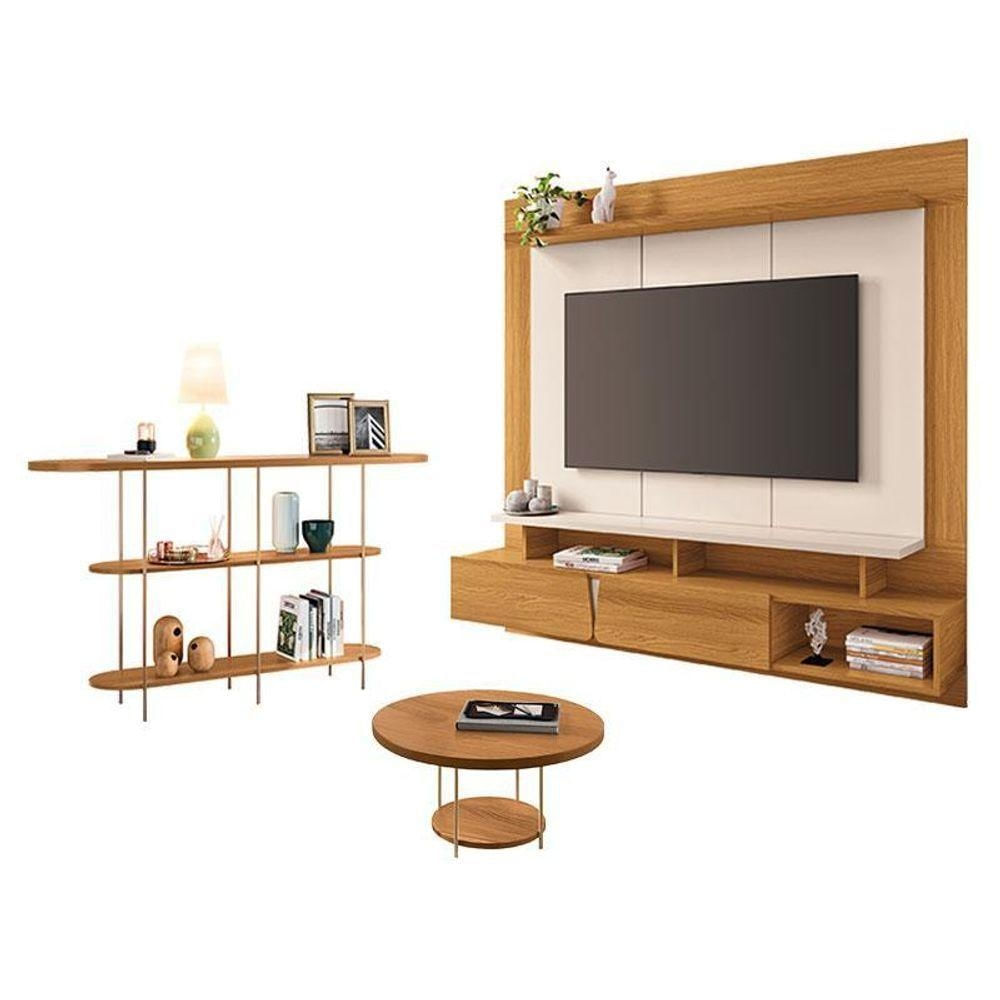 Home Suspenso Zenith Cinamomo Off White com Mesa de Centro Sky e Aparador Infinity Cinamomo - HB MóveisRenove sua sala com um conjunto que combina estilo, praticidade e elegância em cada detalhe. O Home Suspenso Zenith com Mesa de Centro Sky e Aparador Infinity foi desenvolvido para criar um ambiente moderno, organizado e visualmente leve. Home Suspenso Zenith Cinamomo Off White - HB MóveisCaracterísticas técnicas: - Projetado para TV de até 65 - Tampo e prateleira superiores com espessuras de 25mm - 2 Portas basculantes com detalhes curvos - Amplo espaço para aparelhos eletrônicos e decoração - Produzido em MDP e MDF de 25mm, 15mm e 12mmDimensões: Altura:152cm Largura:160cm Profundidade:29,5cmMesa de Centro Sky Cinamomo – HB MóveisCaracterísticas Técnicas: - Desenvolvido em MDF - Pés em aço maciço 3/8 com acabamento em tom dourado - Tampo em mdf - Lindo designDimensões: Altura: 30,5 cm Largura: 60 cm Profundidade: 60 cmAparador Infinity Cinamomo - HB MóveisCaracterísticas Técnicas: - Desenvolvido em MDF - Tampo superior com detalhe usinado e vidro 6mm embutido - Prateleiras com amplo espaço para objetos decorativos - Pés em aço maciço 3/8 com acabamento dourado - Versatilidade de uso - Design modernoDimensões: Altura: 79 cm Largura: 135 cm Profundidade: 35 cmInformações importantes: - Não acompanha decorações e acessórios - Nossas cargas possuem seguro, portanto, no ato da entrega, confira a quantidade de volumes recebida, e também o estado da embalagem. Se houver qualquer inconsistência, não assine o comprovante de entrega; - O armazenamento do produto no endereço de entrega é de responsabilidade do comprador. Evite apoiar o produto na vertical, bem como evite áreas que deixem o produto exposto a chuva ou umidade excessiva; - Pequenas variações de tonalidade são possíveis, em razão da diferença de resolução da tela onde o anúncio está sendo visualizado. Se notar diferença expressiva, comunicar a empresa antes de efetuar a montagem; - O serviço de entrega contratado contempla a entrega até a primeira área coberta ou portaria, não sendo coberto o ato de subir escadas/elevadores ou adentrar nas residências; - Não nos responsabilizamos pela montagem, desmontagem ou instalação do produto. NA