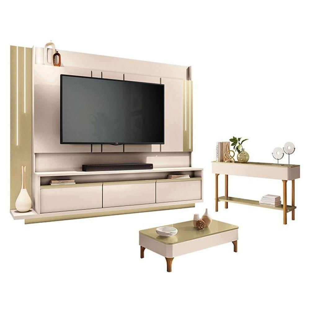 Home Theater Montane Off White Champanhe Com Mesa De Centro Liz E Aparador Fiero Off White Champanhe - Hb Móveis