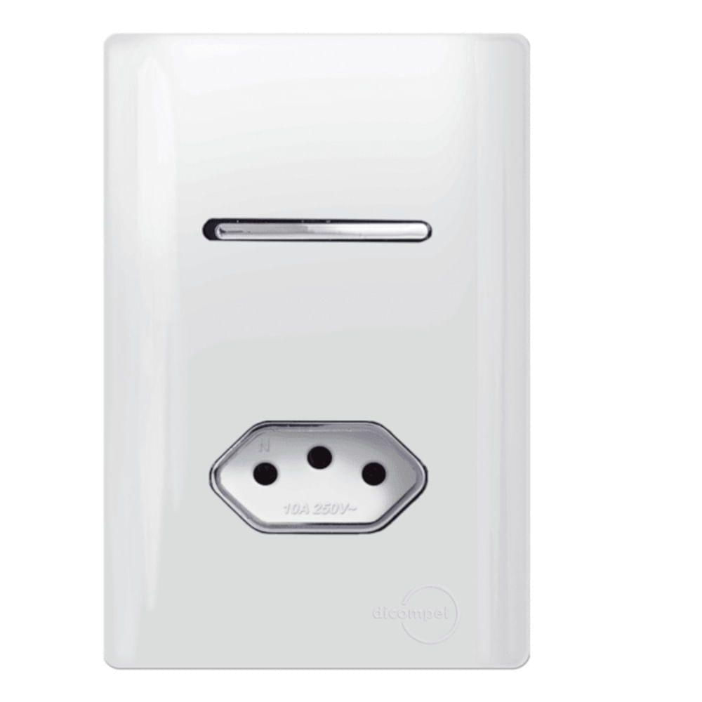 Interruptor Paralelo + Tomada Universal 2p+t 10a Cromado Com Placa 4x2 Branco - Dc-120020 - Novara