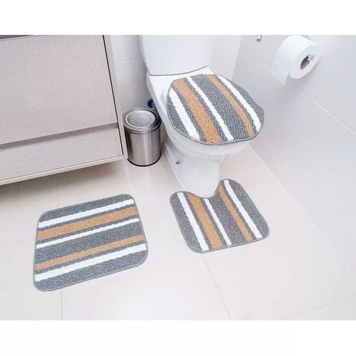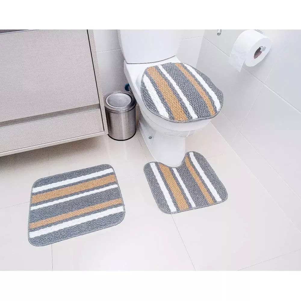 Jogo de Tapetes para Banheiro Tapetes Junior Onix Pop em Polipropileno Cinza 3 Peças