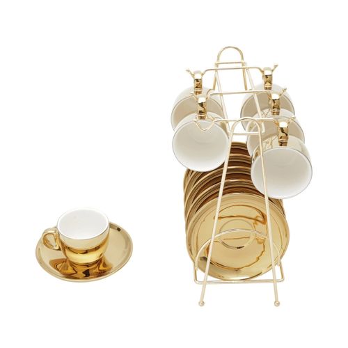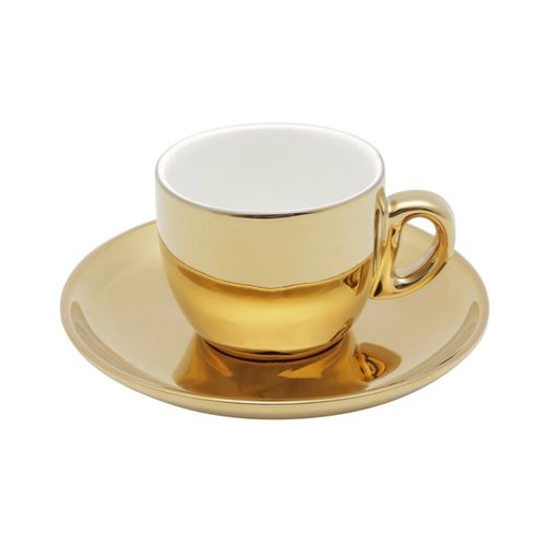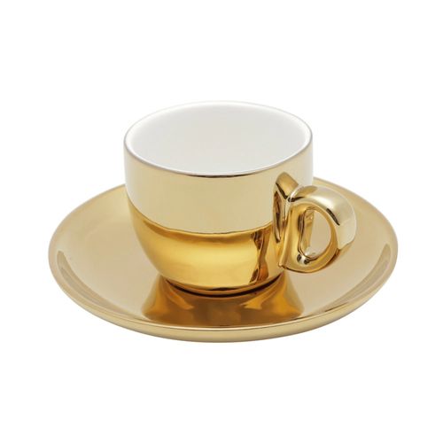 Conjunto de Xícaras de Café Wolff em Porcelana Branco e Dourado 6 Peças 90ml