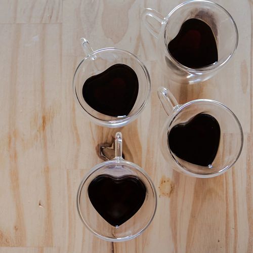 | Mais Informações | 2 xícaras em vidro com paredes em coração 80ml |