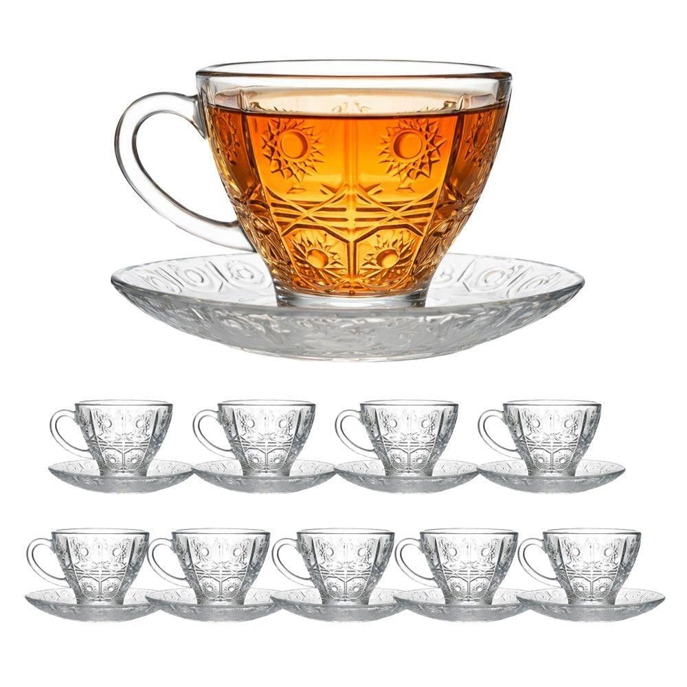 Jogo 10 Xícara De Chá Vidro Transparente Com Pires Bohemia Café Relevo 220ml Em Casa Tem