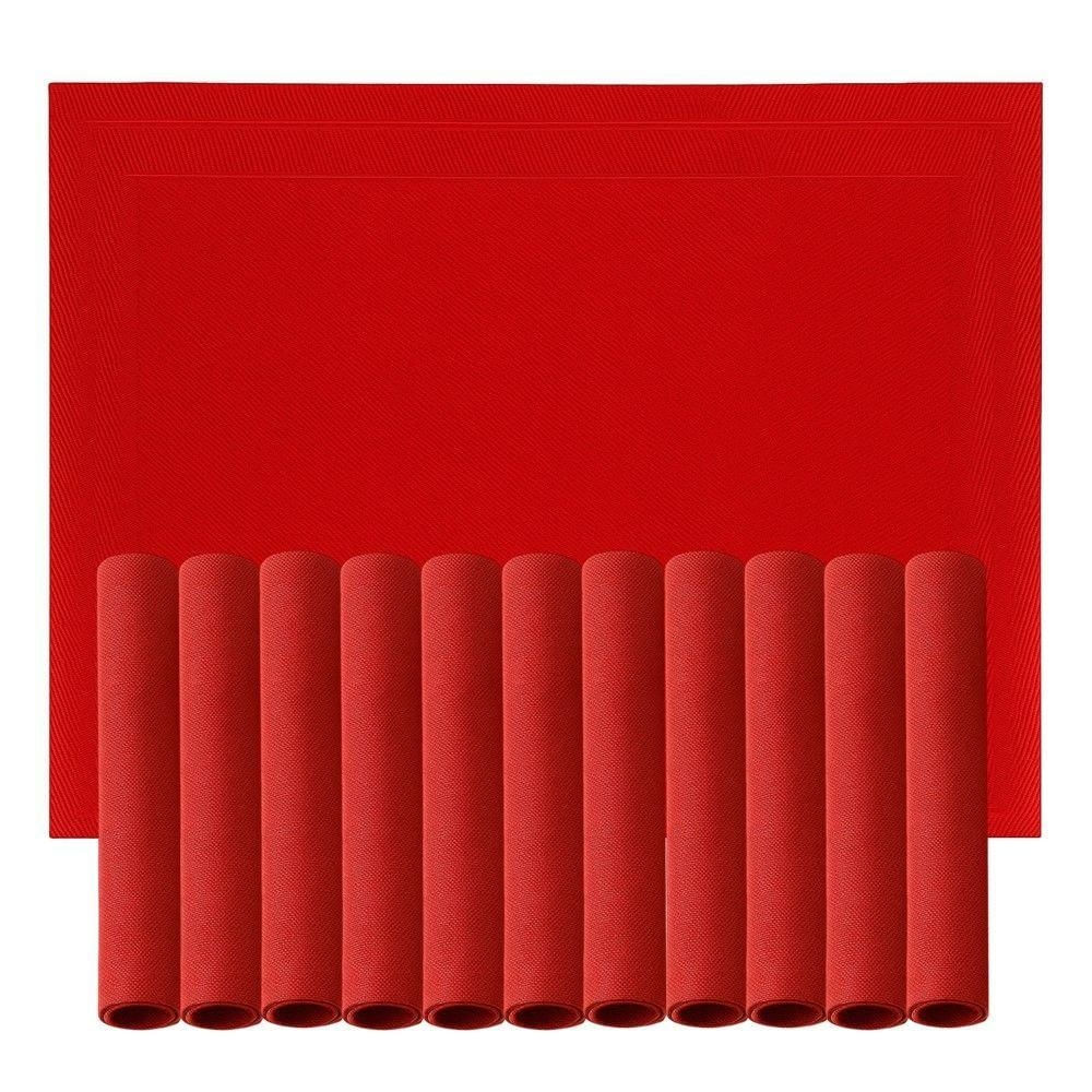 Jogo 12 Lugar Americano Retangular Mesa Pvc Vermelho Executivo 30x45cm Em Casa Tem