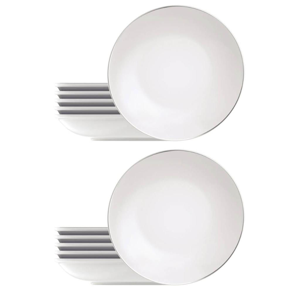Jogo 12 Pratos Rasos de Jantar Porcelana 28cm Tramontina Atena Branco Mesa Posta Restaurante