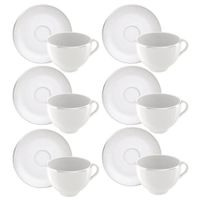 Garantia: 90 dias / Peso total: 3,048kg / Cor predominante: branco / Referência: 7794464795727; Dimensões de cada xícara: 8cm (C) x 8cm (L) x 7cm (A), capacidade 100ml; Dimensões de cada pires: 15cm (D) x 2cm (A); Conteúdo: 12 xícaras de café e 12 pires; Material: 100% porcelana.
