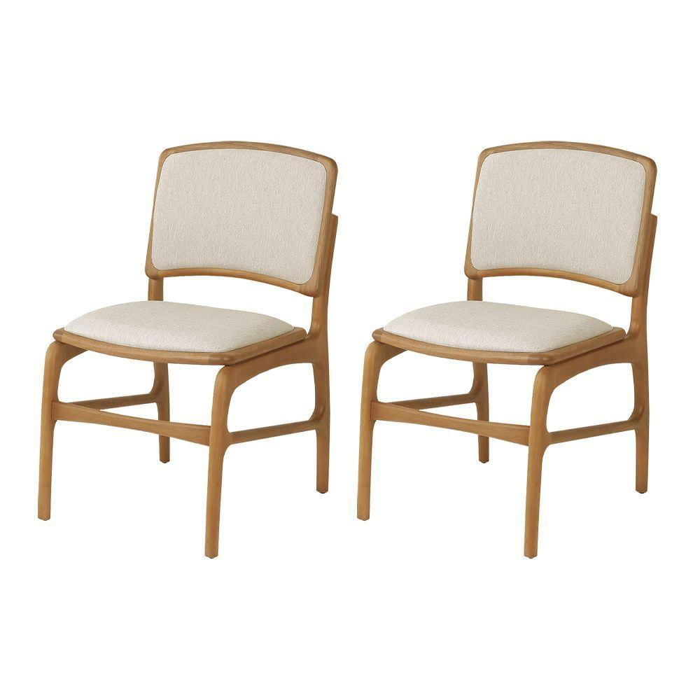 Jogo 2 Cadeiras De Jantar Florença Em Madeira Jequitibá Natural Encosto Em Tecido Premium Linho Bege