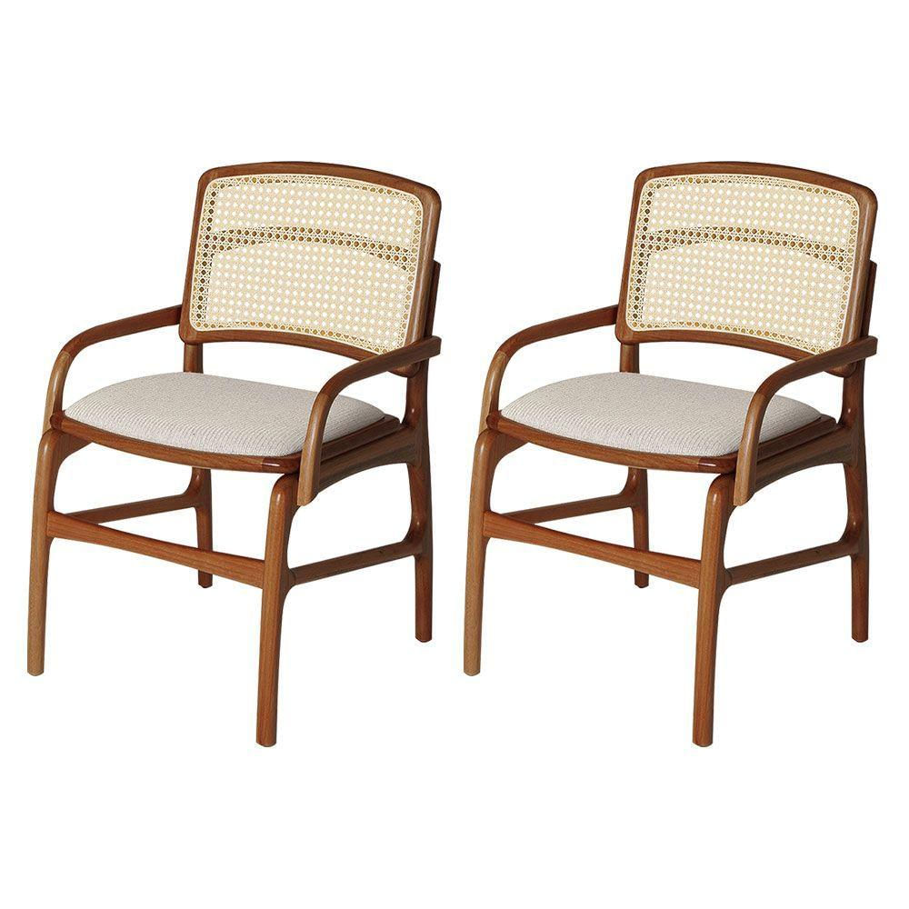 Jogo 2 Cadeiras De Jantar Florença Estrutura Em Madeira Jequitibá Terra Braço Encosto Palha Linho Bege