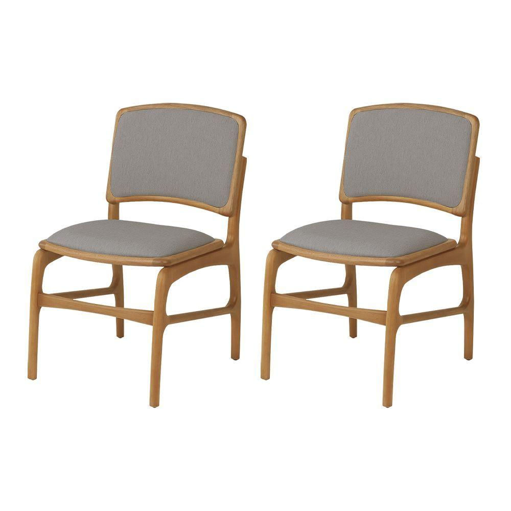 Jogo 2 Cadeiras De Jantar Florença Jequitibá Natural Encosto Em Tecido Premium Em Linho Cinza