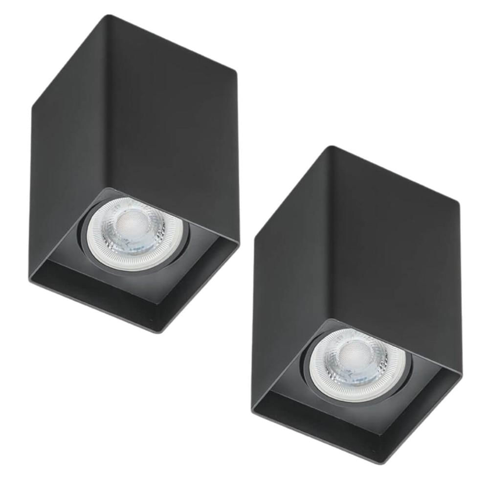 Jogo 2 Luminárias de Teto Spot Quadrado Termoplástico Preto Iluminação Decorativa