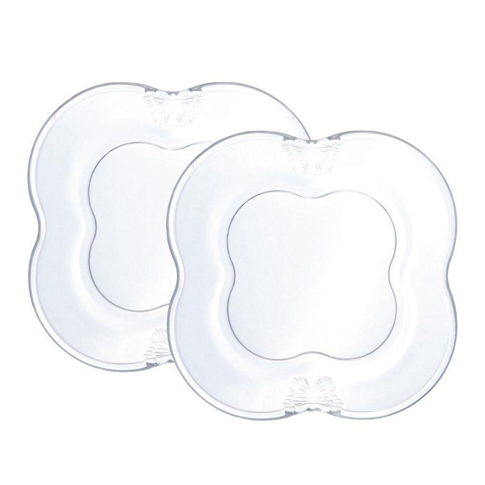 Jogo 2 Prato De Sobremesa De Vidro Butterfly Borboleta Transparente Wolff 17cm