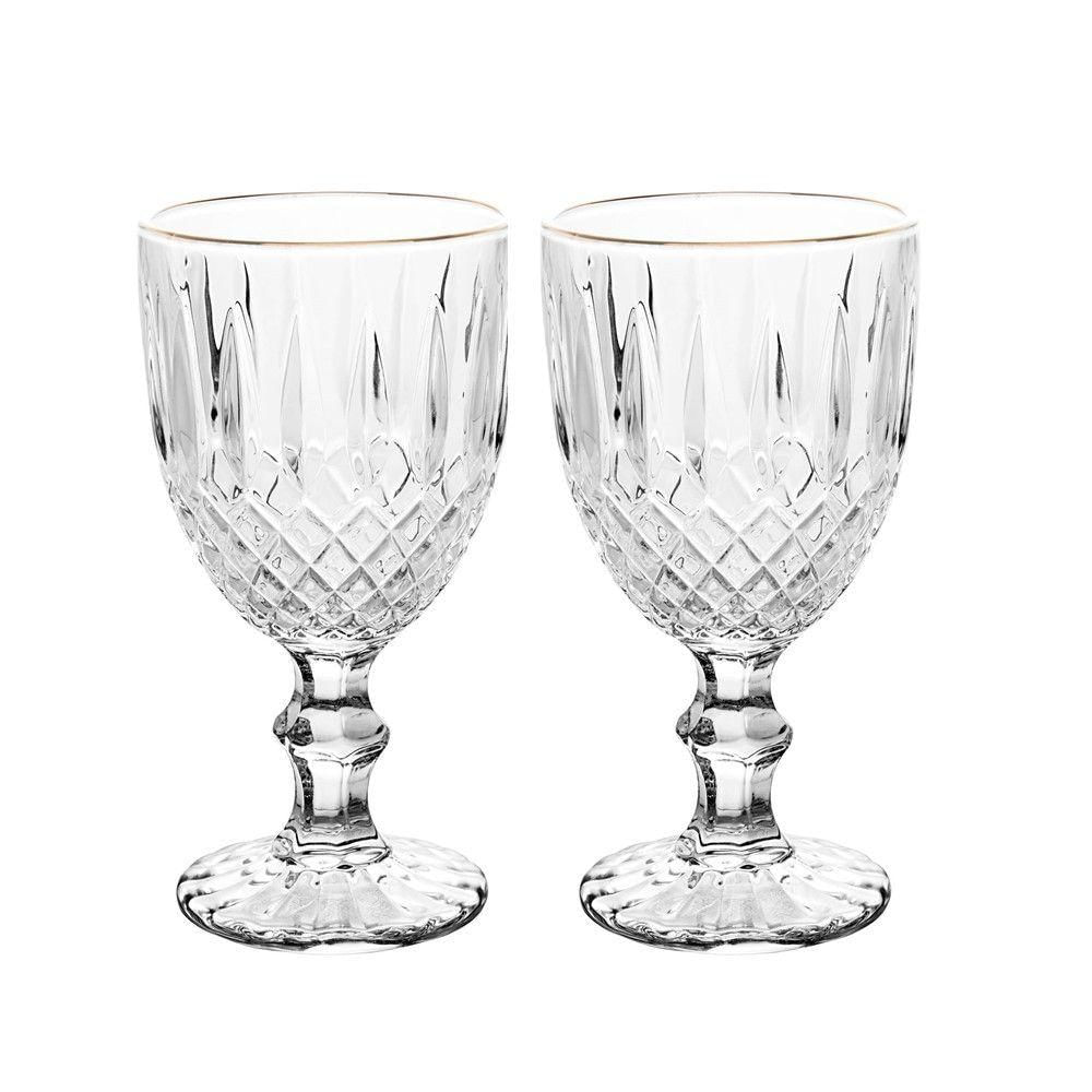 Jogo 2 Taça De Vidro Transparente Com Borda Dourada Fio De Ouro Greek 345ml Wolff