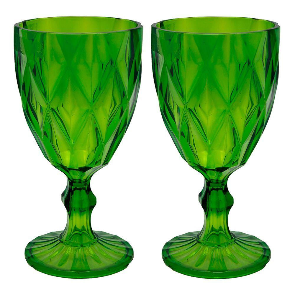 Jogo 2 Taças De Acrílico Verde Diamond Diamante Festa Piscina Plástico 330ml Lyor