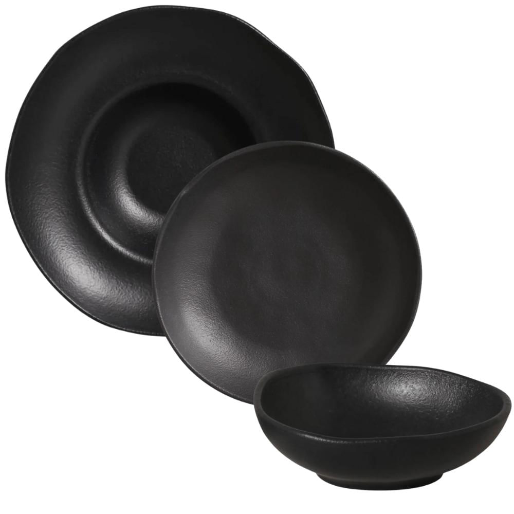 Jogo 3 Peças Prato Fundo de Massa Cumbuca Orgânico Cerâmica Preto Matte Porto Brasil.