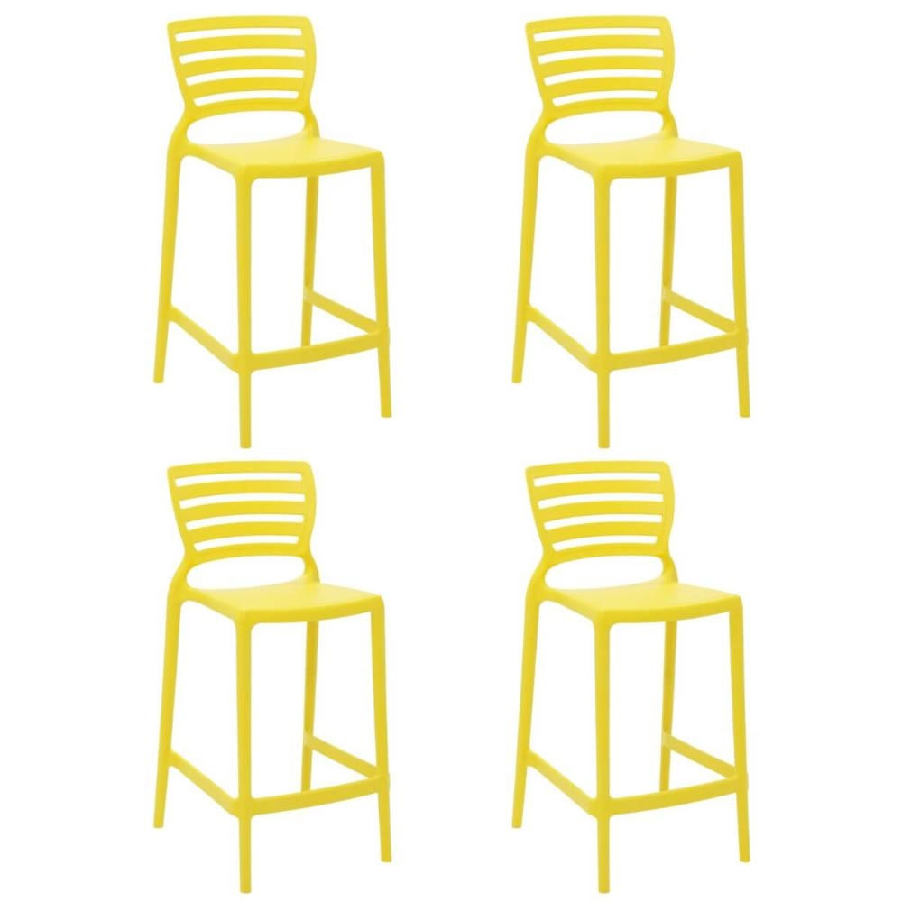 Jogo 4 Banquetas Tramontina Sofia Cadeiras Altas de Plástico Resistente Amarelo Sala de Estar Lazer