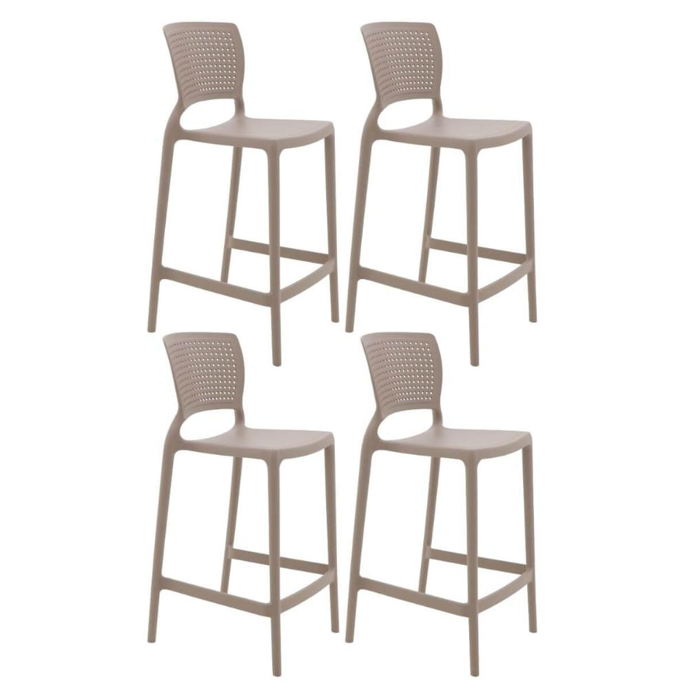 Jogo 4 Cadeiras Altas Tramontina Safira Camurça em Plástico Bancada Cozinha Área Gourmet Bar