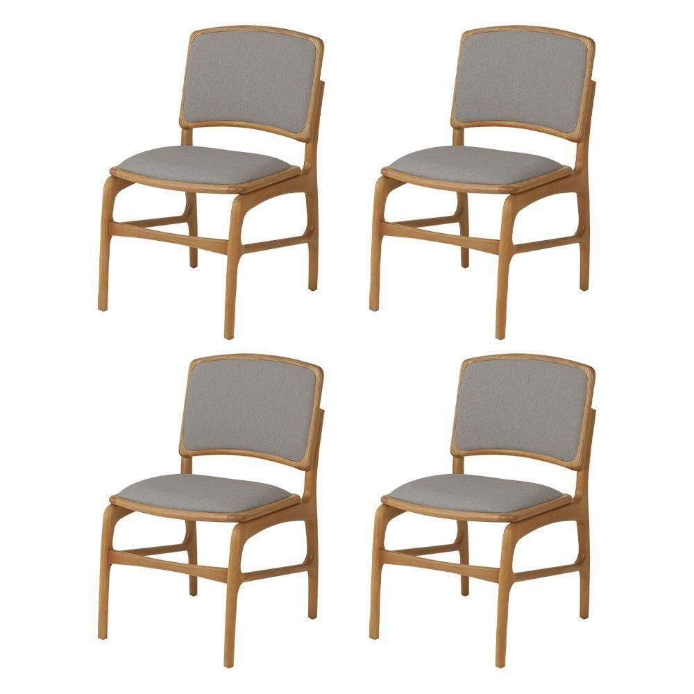 Jogo 4 Cadeiras De Jantar Florença Em Madeira Jequitibá Natural Encosto Em Tecido Premium Linho Cinz