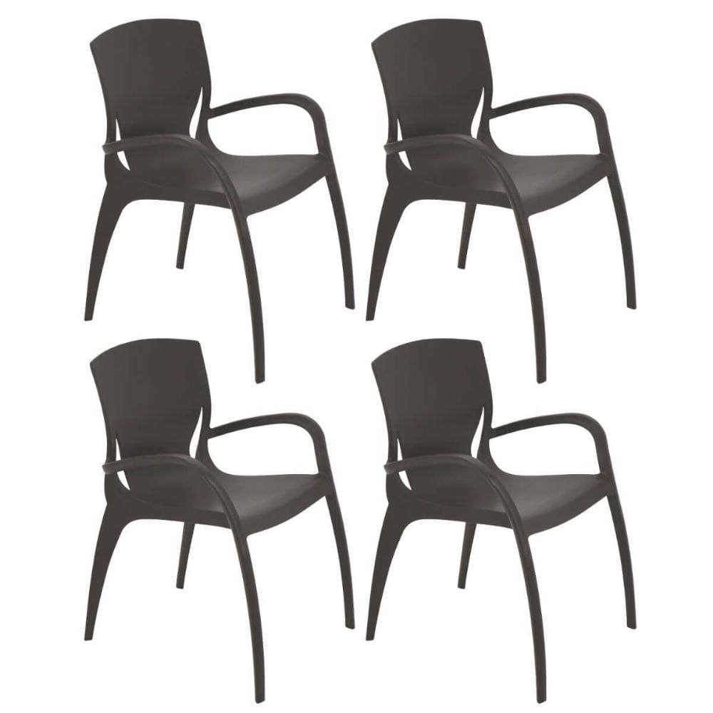 Jogo 4 Cadeiras Plásticas Marrom Com Braços Tramontina Summa Clarice 60x59cm Uso Interno Externo