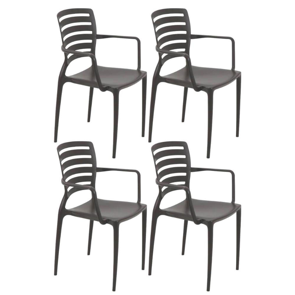 Jogo 4 Cadeiras Plásticas Tramontina Sofia Marrom com Braços Empilhável Área Externa Interna
