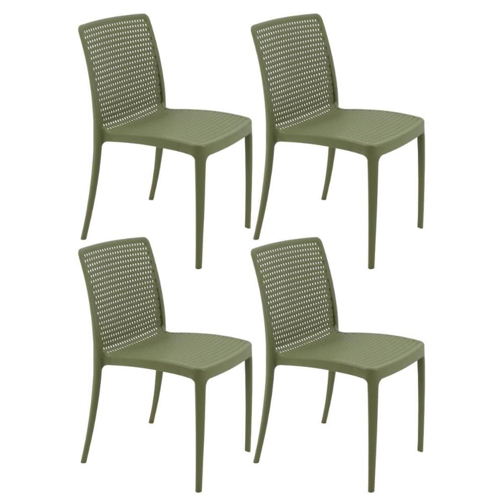 Jogo 4 Cadeiras Plásticas Verde Oliva para Mesa Tramontina Isabelle Cozinha Sala Área Gourmet