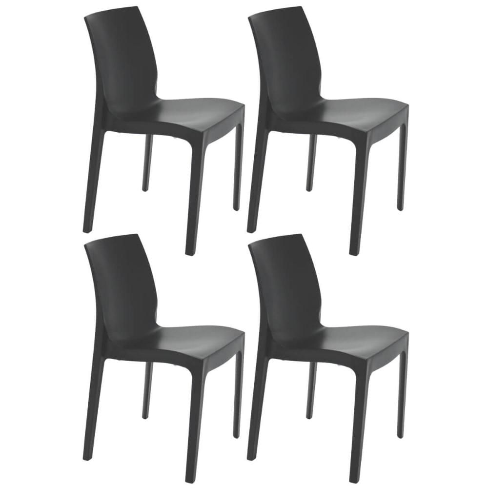Jogo 4 Cadeiras Tramontina Alice Plástico Resistente Preto Sem Braços Sala Varanda Jardim Cozinha