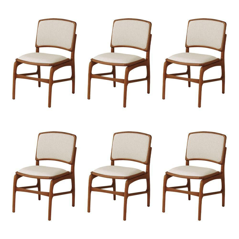 Jogo 6 Cadeiras Para Jantar Florença Madeira Jequitibá Terra Encosto E Assento Em Tecido Linho Bege