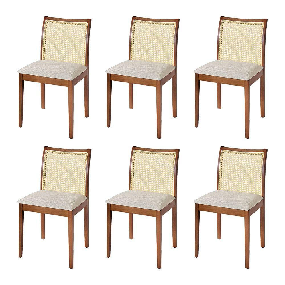 Jogo 6 Cadeiras Para Jantar Juliana Jequitibá Terra Estrutura Em Madeira Maciça Linho Bege