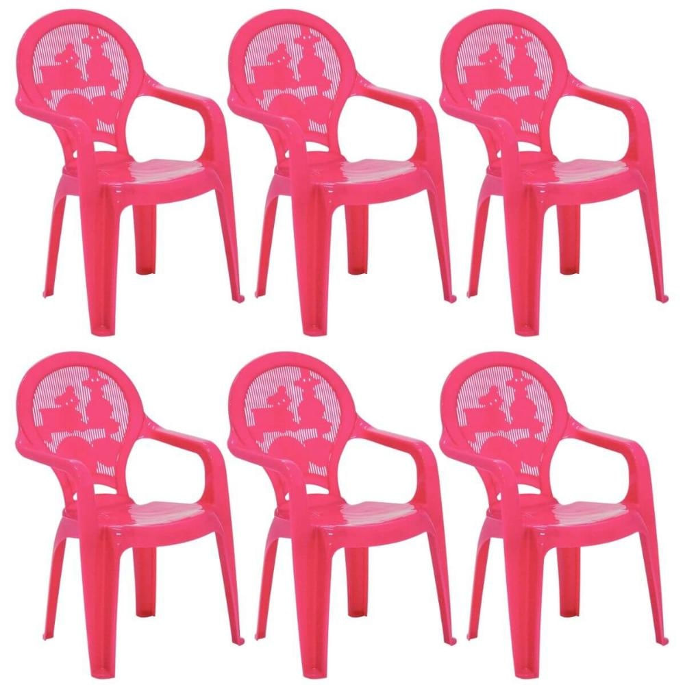 Jogo 6 Cadeiras Plásticas Infantil Rosa Estampado Tramontina Catty Escola Creche Sentar.