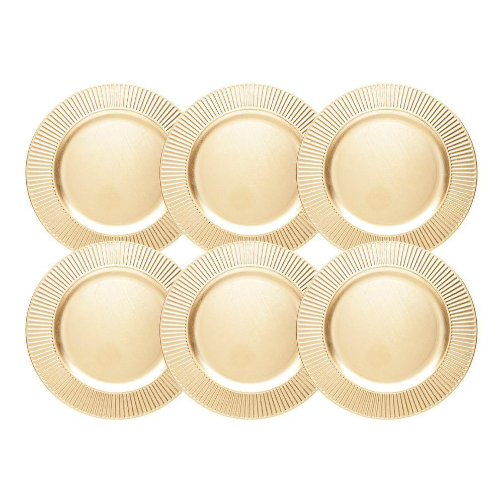 Jogo 6 Sousplat De Mesa Redondo Primer Dourado Plástico Lyor 33cm