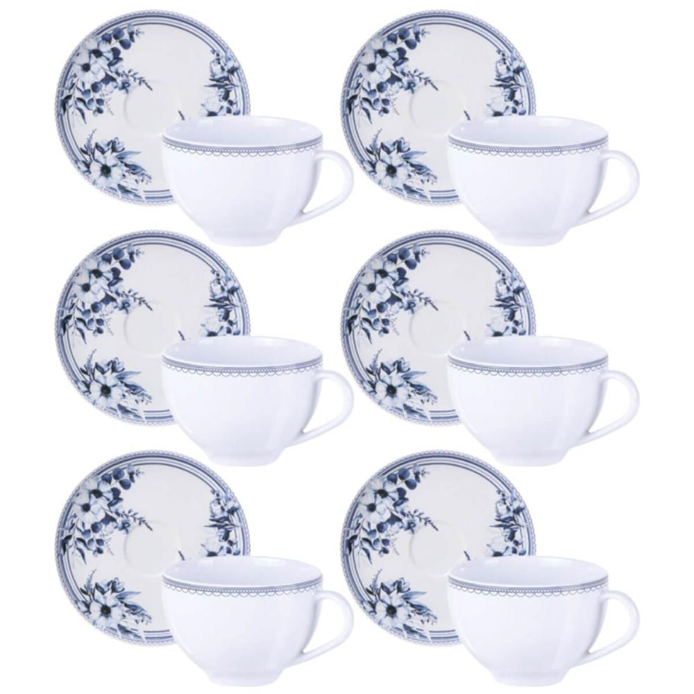 Jogo 6 Xícaras com Pires 250ml Porcelana Decorada Tramontina Azzura Servir Café Chá