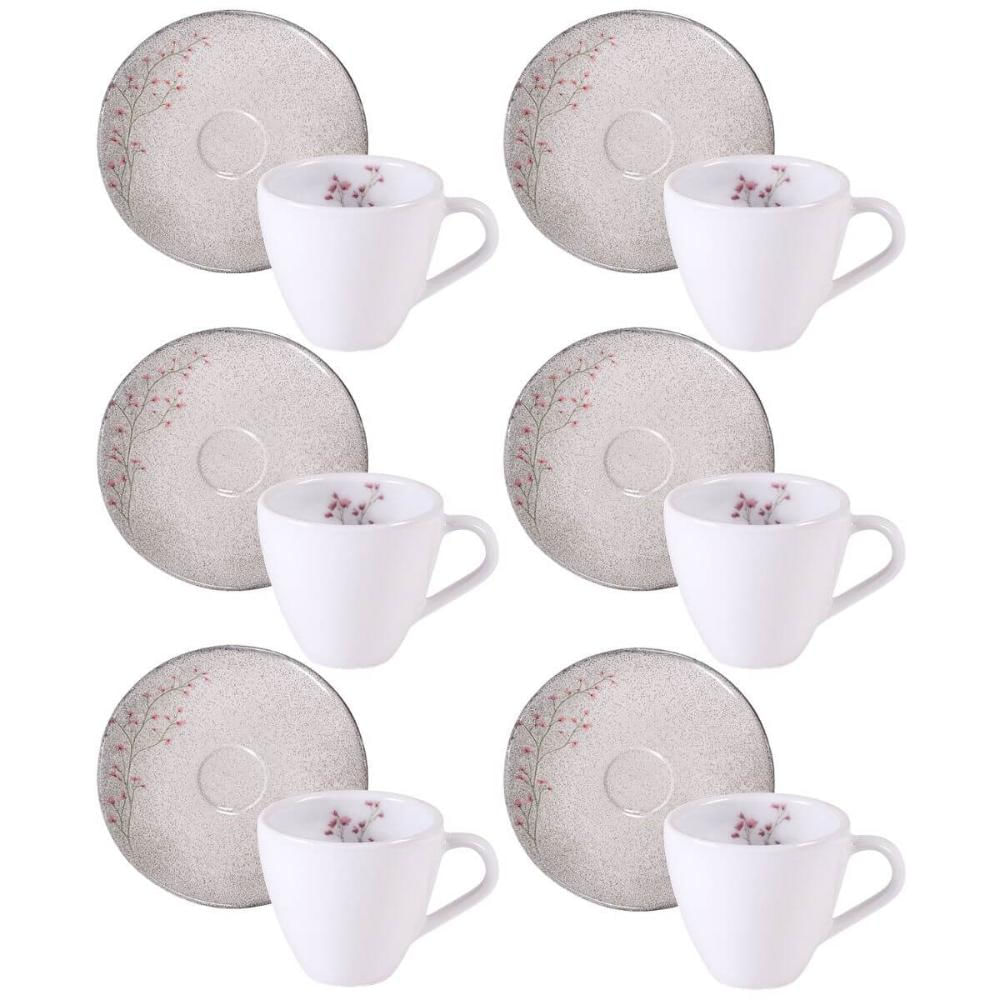 Jogo 6 Xícaras de Café com Pires 95ml Expresso Chá Porcelana Tramontina Floralis Servir Mesa Posta