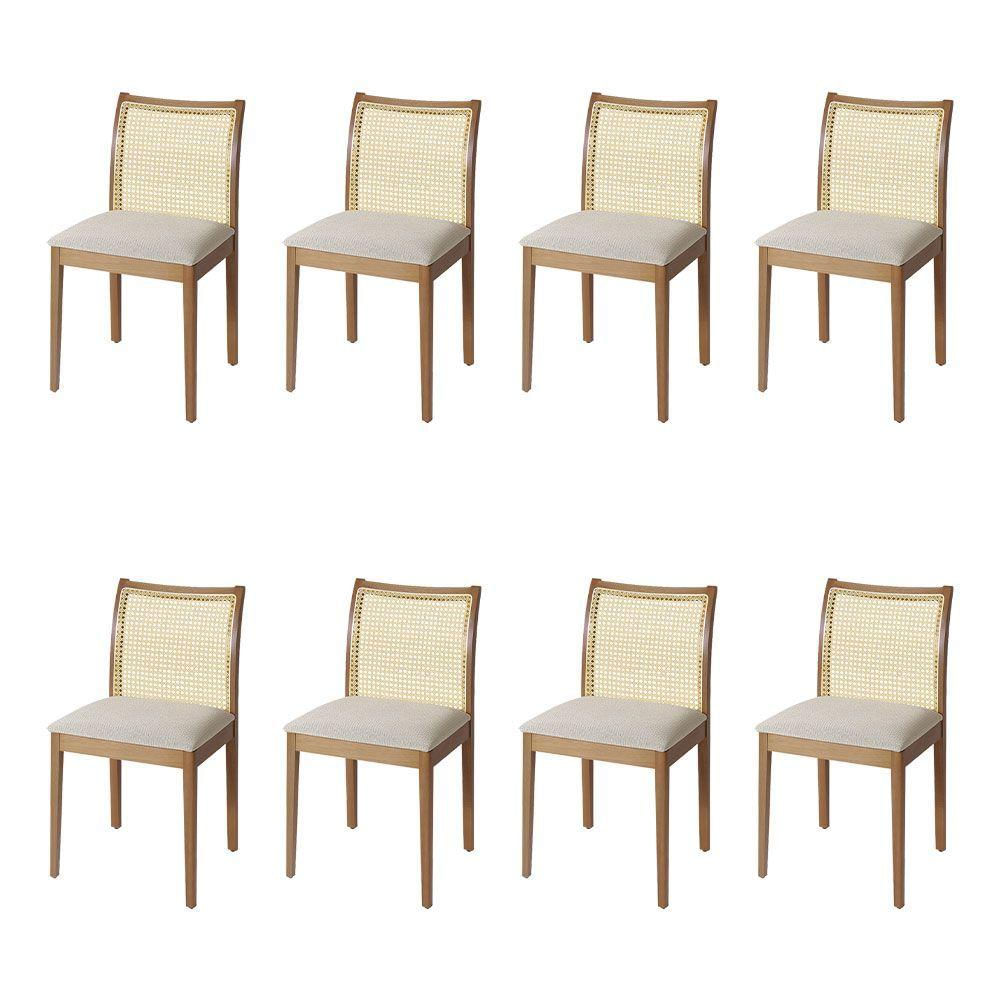Jogo 8 Cadeiras De Jantar Juliana Jequitibá Natural Em Madeira Maciça Encosto Palha Linho Bege