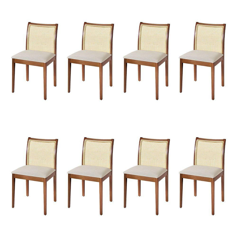 Jogo 8 Cadeiras Para Jantar Juliana Jequitibá Terra Estrutura Em Madeira Maciça Linho Bege