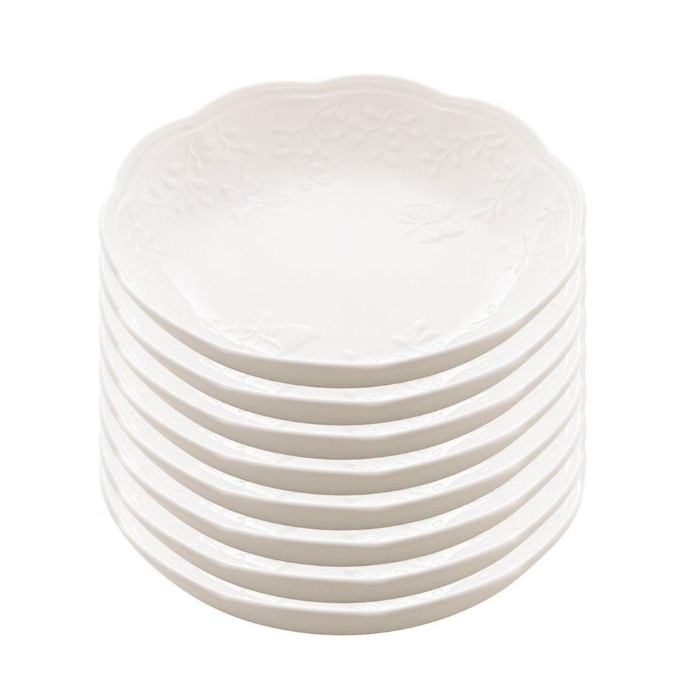 Jogo 8 Prato Fundo Branco De Porcelana New Bone Butterfly Flower Flores 21cm Lyor