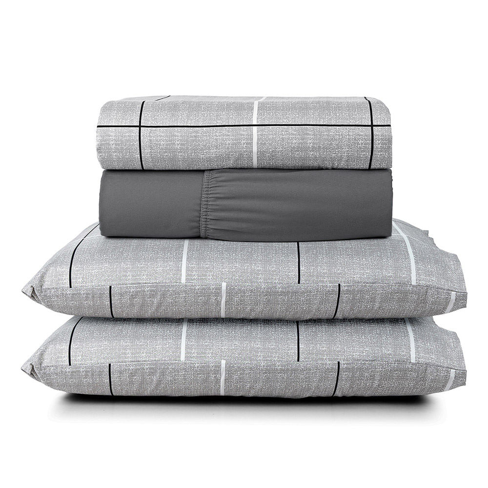 Jogo Cama Lençol Celi King Micropercal Estampado 200 Fios 4 Peças Xadrez Grid Cinza
