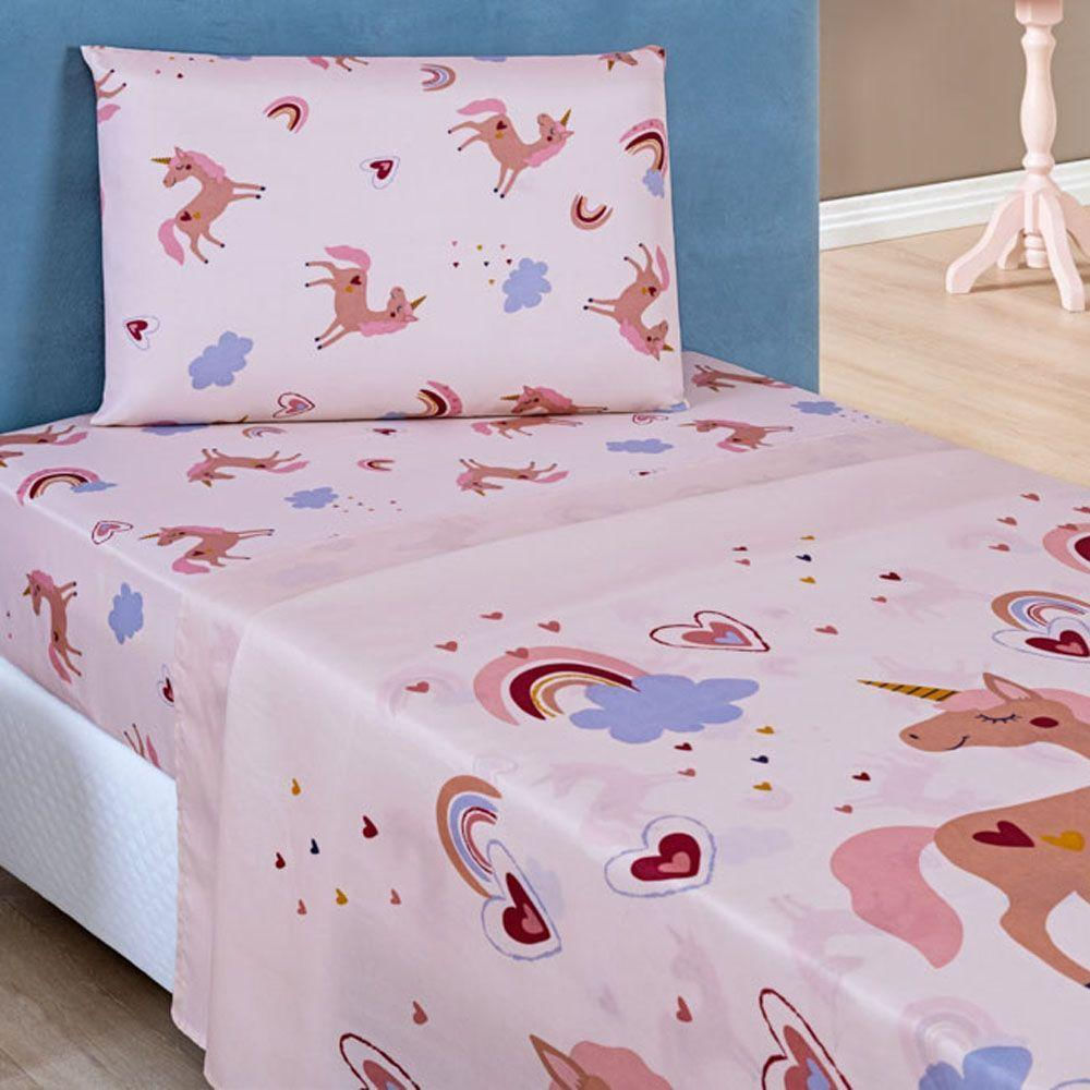 Jogo Cama Lençol Fantasy Solteiro Infantil Microfibra 3 Peças - Unicórnio