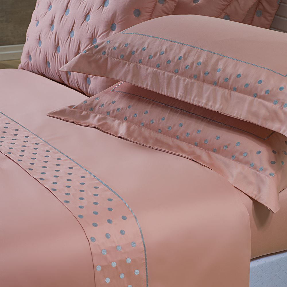 Jogo Cama Lençol Garland King Bordado 100% Algodão Acetinado 400 Fios 4 Peças - Rosê e Cinza