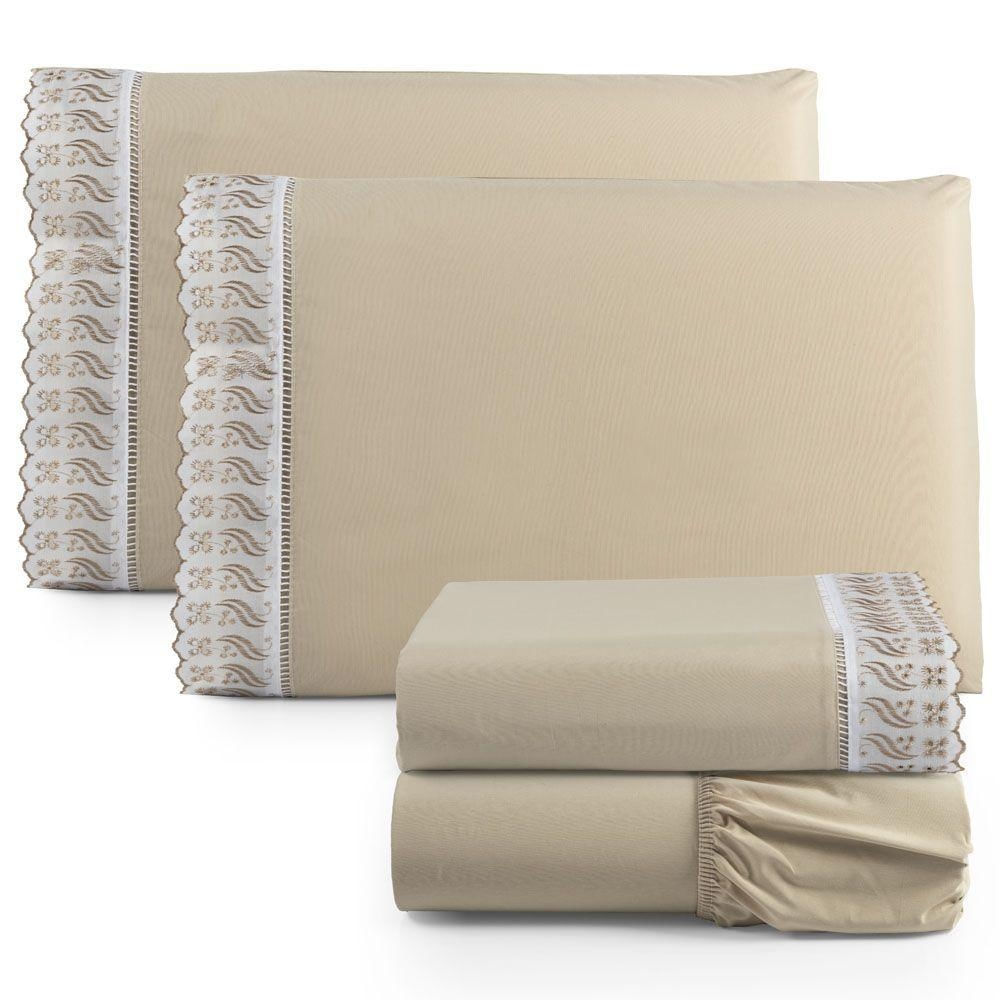 Jogo Cama Lençol Paris Casal Padrão Percal 180 Fios 100% Algodão Lese Bordada 4 Peças - Castor