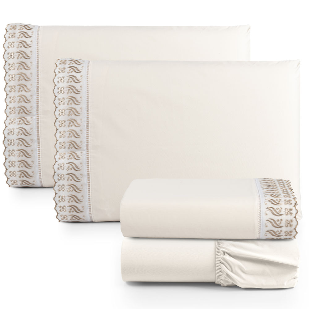 Jogo Cama Lençol Paris Casal Padrão Percal 180 Fios 100% Algodão Lese Bordada 4 Peças - Palha