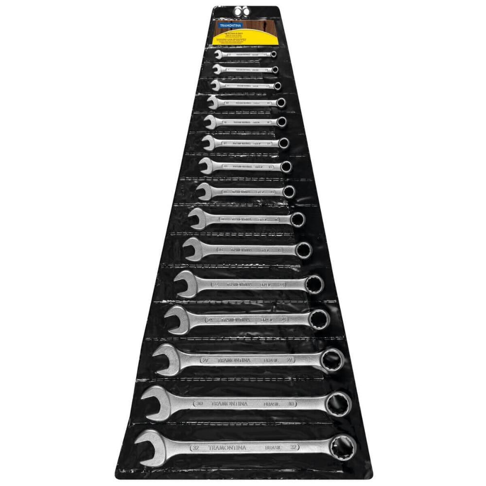 Jogo Chaves Combinadas 15 Peças Tramontina Basic Aço Cromado 6mm a 32mm.