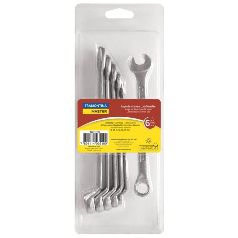 Jogo Chaves Combinadas 6 Pçs Aço Vanádio Cromado Tramontina Master em Milímetros Manutenção