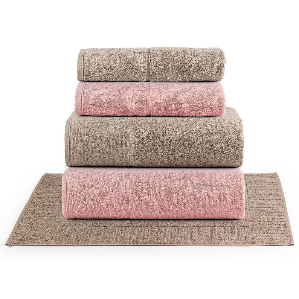 Jogo De Banho Blume Fio Penteado Jacquard 05 Peças 100% Algodão - Nuvem Rosa/amêndoa/amêndoa