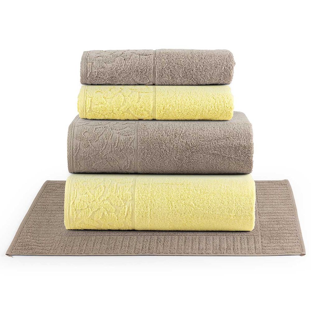 Jogo de Banho Blume Toalhas Macias 100% Algodão Fio Penteado 5 Peças Amarelo e Bege