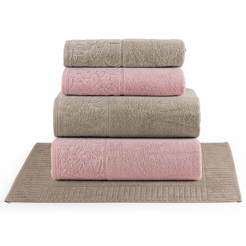 Jogo de Banho Blume Toalhas Macias 100% Algodão Fio Penteado 5 Peças Rosa e Bege