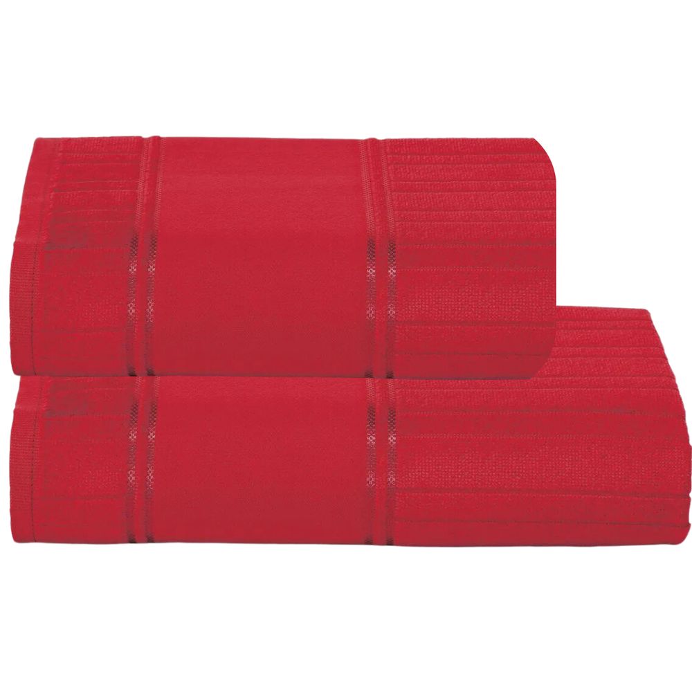 Jogo De Banho Dohler Artesanalle Barrado Liso com 2 Peças Vermelho