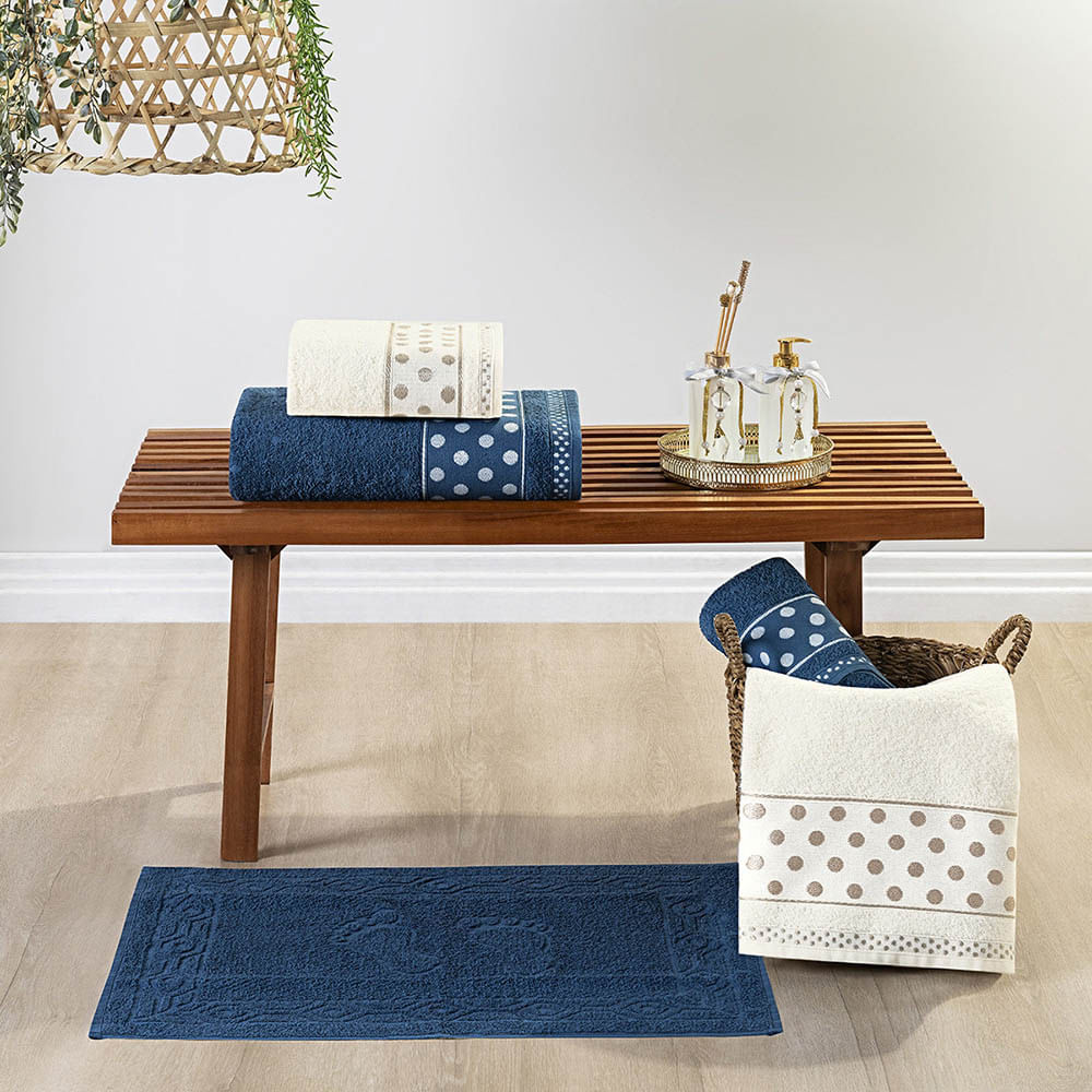 Jogo de Banho Toalhas Celine 5 Peças 100% Algodão 450g/m² Suave - Marinho Pérola