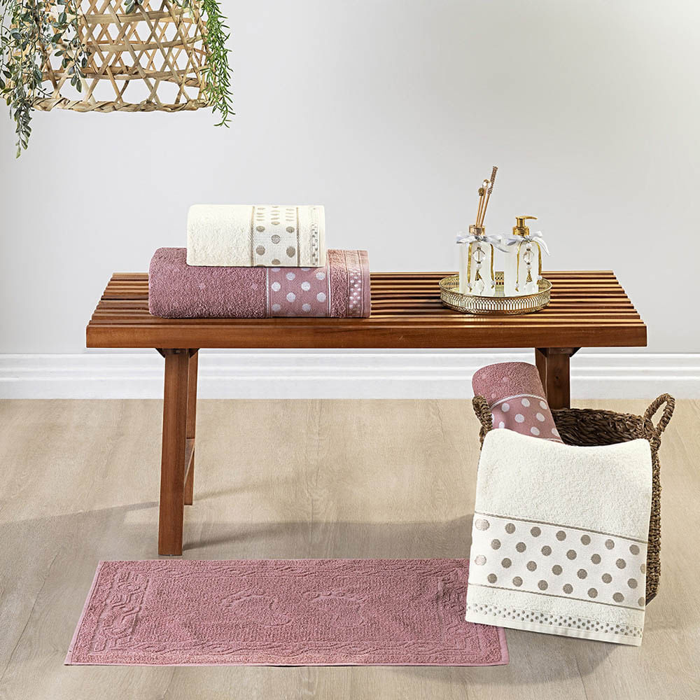 Jogo de Banho Toalhas Celine 5 Peças 100% Algodão 450g/m² Suave - Rosa Pérola