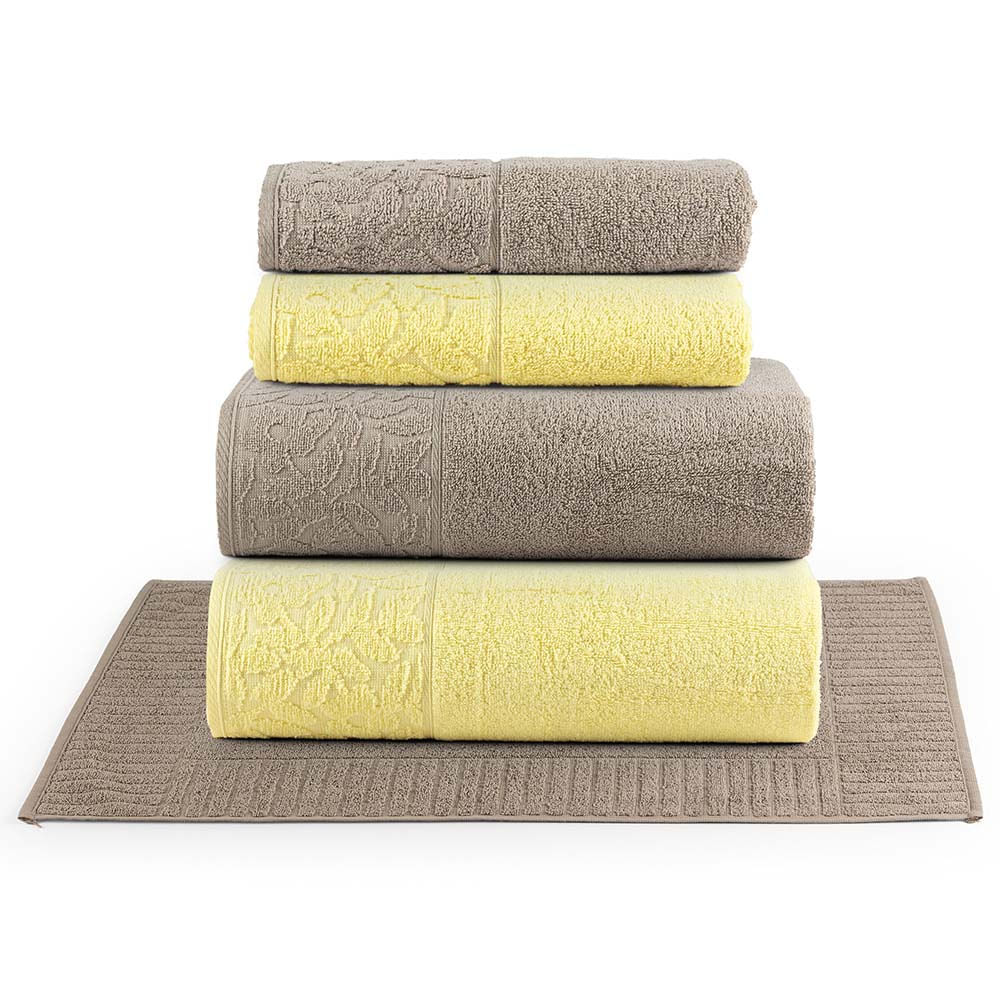 Jogo de Banho Toalhas Dunae 100% Algodão Fio Penteado Macio 05 Peças Floral - Amarelo Amendoa