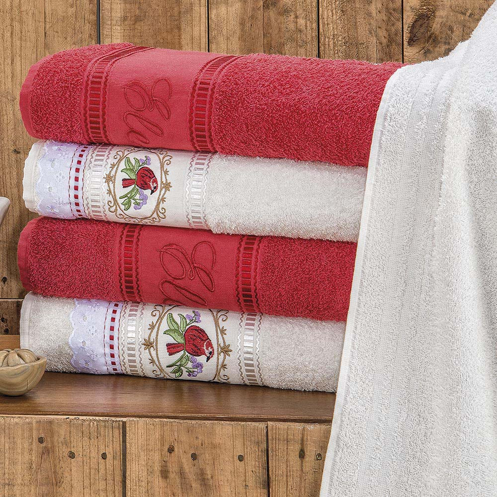 Jogo de Banho Toalhas Ponto Russo 100% Algodão Macio 05 Peças Bordado - Vermelho