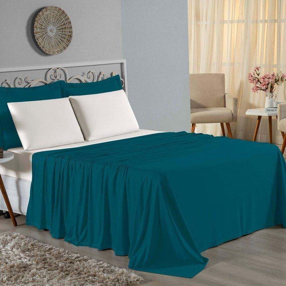 Jogo De Cama Casal Nobre 4 Peças Lençol Com Elástico De 30cm De Altura Malha 100% Algodão - Petróleo / Palha